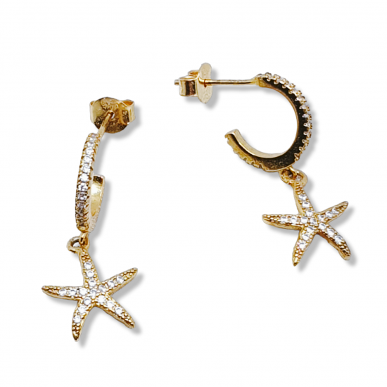 Aros en plata de ley bañados en oro con colgante de estrella de mar.