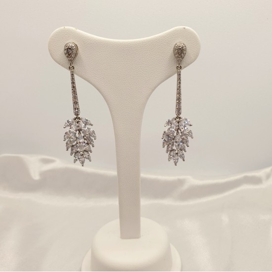 Pendientes en plata de ley con racimo de circonitas, 45mm de largo. Cierre de presión.