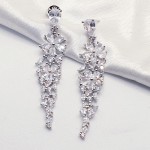 Pendientes en plata de ley con circonitas, Largo 55mm. Cierre de presión.