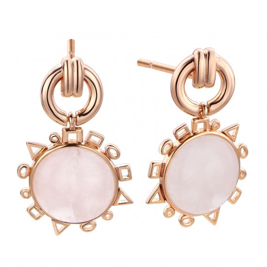 Pendientes de Durán Exquse de la colección Bitácora de plata dorada champagne cuarzo rosa