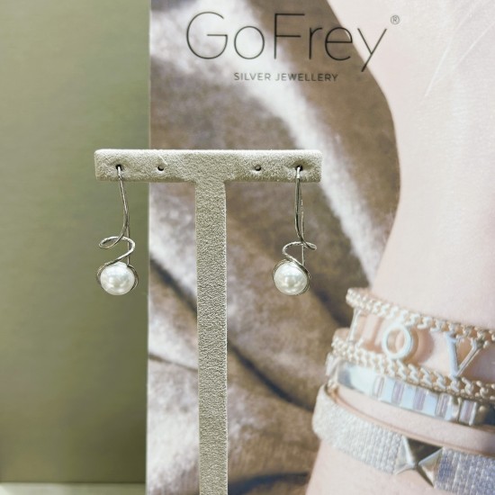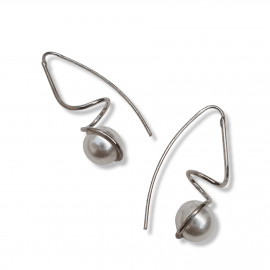 Pendientes de aguja en plata de ley diseño de muelle y perla. 27mm de largo