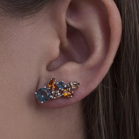 Pendientes trepadores de plata para mujer. El toque de color perfecto para dar vida a tus estilismos. Pendientes trepadores en plata con diseño de hoja y diferentes medidas de cuarzo adamantino en tonos skyblue, coffee y champagne. Perfectos para ti.