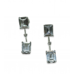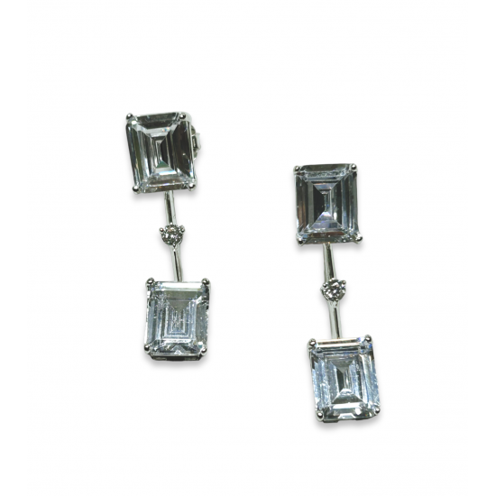 Pendientes largos en plata de ley con circonitas cuadradas. Cierre de presión. 28mm de largo