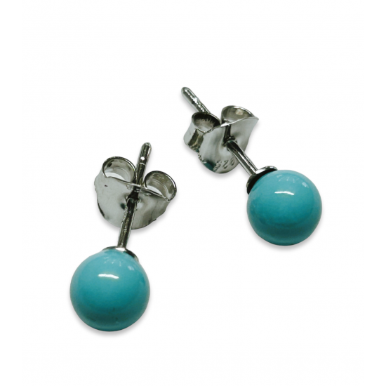 Bolitas en turquesa de 6mm de diámetro con palillo y tuerca en plata. Cierre de presión.