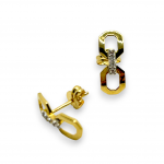 Pendientes en oro de 18k y circonitas. 14mm de largo. Cierre de presión