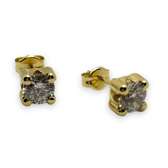 Pendientes en oro de 18k con circonita montada en garra cuadrada. Cierre de presión. 5,5 mm de ancho