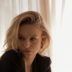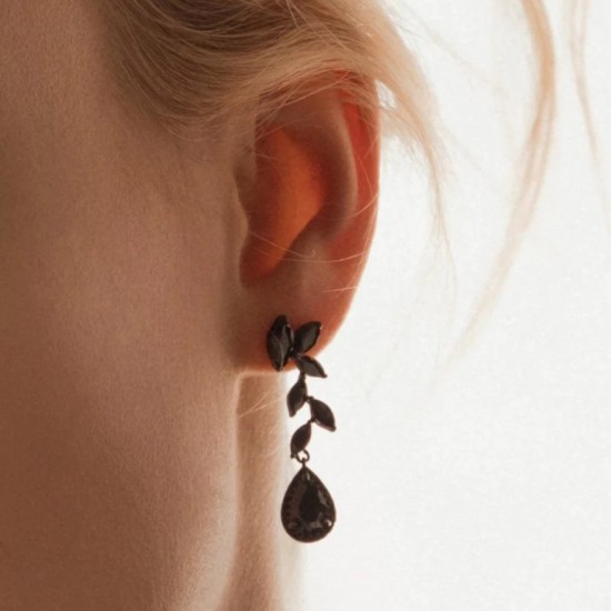 Pendientes de plata con un diseño lineal descendiente adornado con circonitas blancas en múltiples tallas, con una perilla en el extremo y con circonitas brillantes que la rodean.