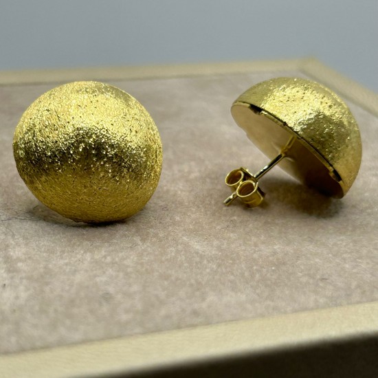 Pendientes en plata de ley con baño de oro y acabado texturizado. 1.8 cm de diámetro con cierre de presión.