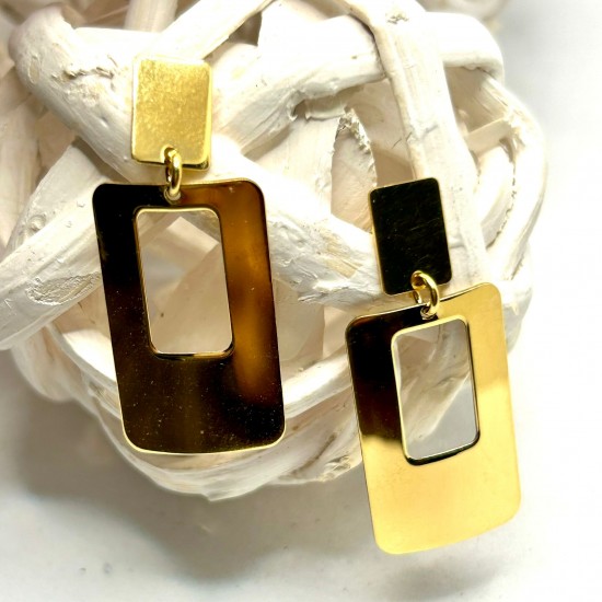 Pendientes doble rectángulo en plata dorada