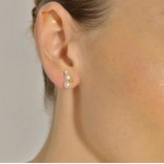 Pendientes fabricados en plata de ley con baño de oro formados por dos perlas cultivadas y una pequeña circonita en la parte de arriba. Cierre de presión. Miden de largo 1.2cm. Pertenece a la colección MINIJEWELS de Salvatore plata.