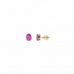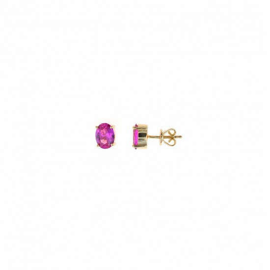 Pendientes fabricados en plata de ley con baño de oro y una circonita fucsia en forma ovalada. Cierre de presión. Perfectos para dar un toque de color a tus looks.