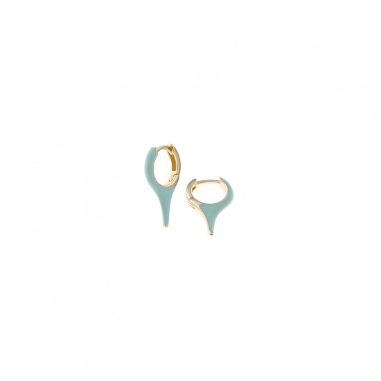 Aros con forma de pincho fabricados en plata de ley con baño de oro y esmalte color verde menta. Cierre de clic.
