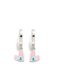 Aros fabricados en plata de ley con baño de rodio y colgante de corazón con esmalte en color rosa y azul.