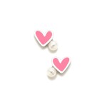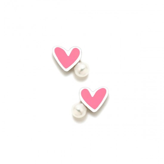 Pendientes fabricados en plata de ley con baño de rodio en forma de corazón con esmalte rosa y una pequeña perla natural. Cierre de rosca.