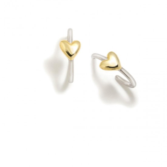Aros bicolor fabricados en plata de ley con baño de rodio y corazón con baño de oro. Cierre de presión.