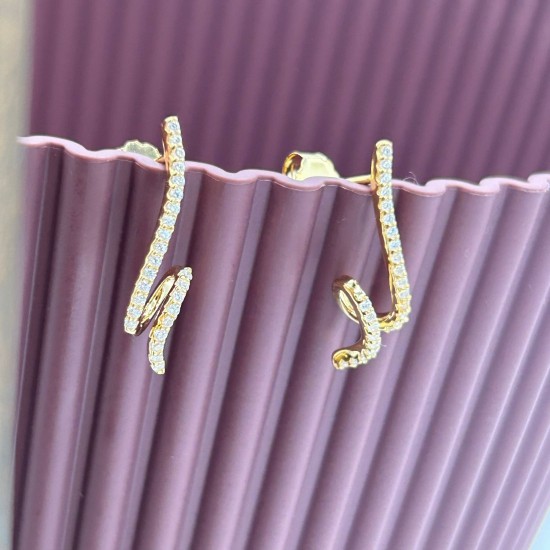 Pendientes fabricados en plata de ley con forma de tirabuzón lleno de pequeñas circonitas que aportan un toque de brillo a tus looks. Mide 2cm de largo. Cierre de presión.