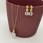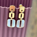 Pendientes largos fabricados en plata de ley con baño de oro formado por 3 eslabones de diferente tamaño, dos dorados y el último con madreperla. Miden 2.7cm de largo. Cierre de presión.