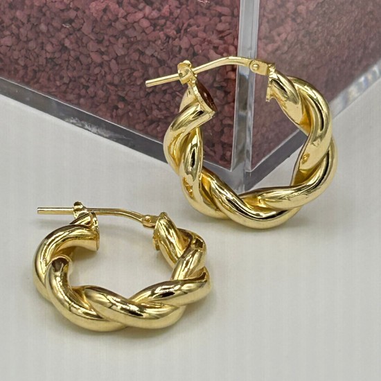 Aros rizados fabricados en plata de ley con baño de oro y cierre italiano.