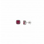 Pendientes fabricados en plata de ley con diseño cuadrado y baño de rodio formados por una piedra rubí rodeada por pequeñas y brillantes circonitas blancas. Cierre de presión.
