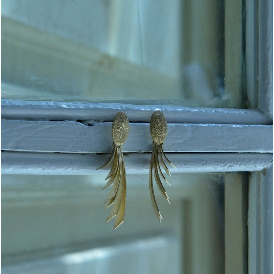 Pendientes largos fabricados en plata de ley con baño de oro. Cierre de presión. Pertenecen a la colección BAMBOO de Salvatore plata.
