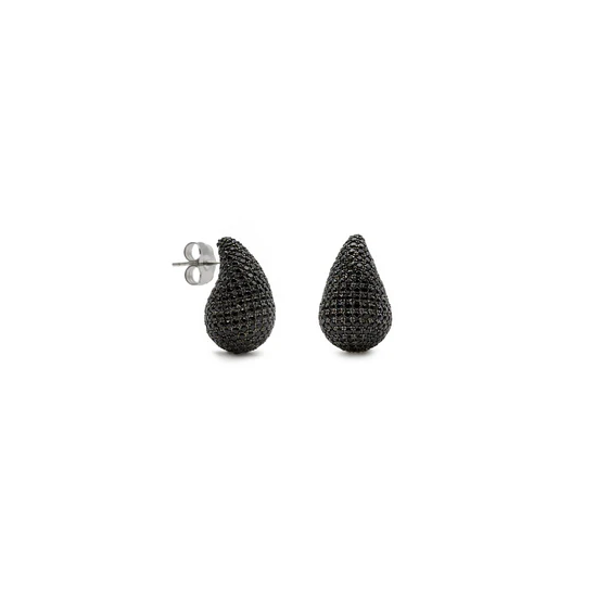 Pendientes fabricados en plata de ley con circonitas mini en color negro. Su forma de mini gota lo convierte en el complemento perfecto para tu día a día. Miden 1.6cm de largo. Cierre de presión.