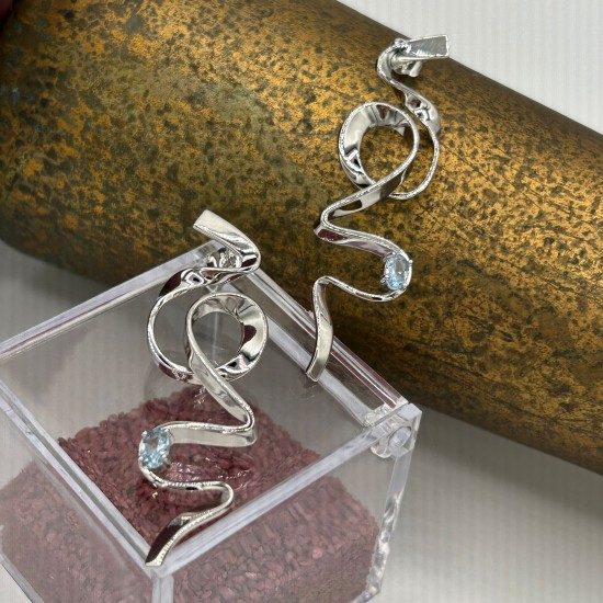 Pendientes largos fabricados en plata de ley con forma de tirabuzón y una piedra color aguamarina. Miden 6cm de largo. Cierre de presión. Perfectos para aquellas personas que buscan un diseño original con el que completar sus looks.