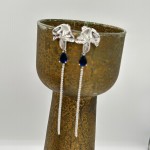 Pendientes largos fabricados en plata de ley con forma de onda de la que cuelga una circonita en forma de lágrima en color azul zafiro sujeta por tres garras y una fina cadena de brillantes circonitas. Miden 9cm de largo aproximadamente. Perfectos para combinar con la sortija a juego en eventos especiales. Cierre de presión.