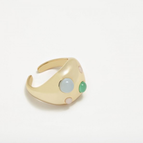 Anillo multisize de latón con baño de oro y resinas. Disponible en talla 16.