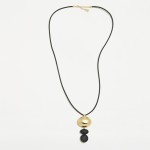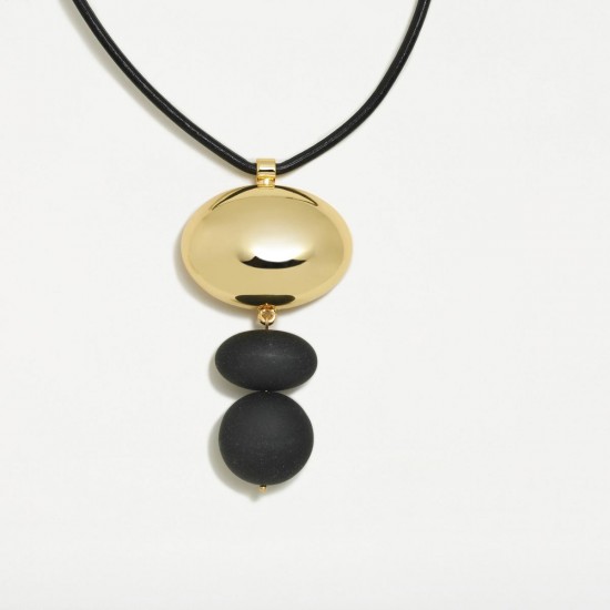Colgante latón bañado y cuero. Acabado e-coating. Cierre mosquetón y cadena de extensión.