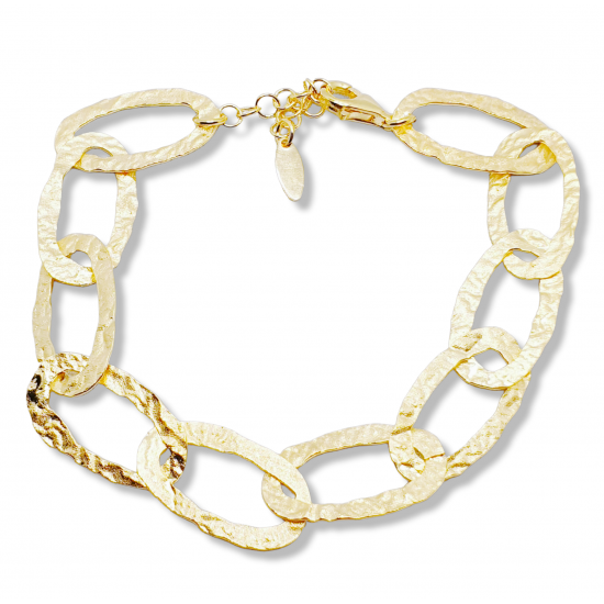 Pulsera en plata de ley con baño en oro. Eslabones planos matizados. Largo 17.5 + 3cm
