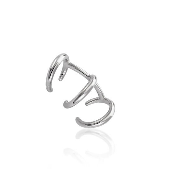 Ear cuff formado por tres aros en plata lisa. Este pendiente tan moderno y fino hará que lo puedas utilizar tanto para el día a día como para tus ocasiones especiales.