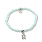 Pulsera elástica de piedras color celeste y colgante niño con circonitas.