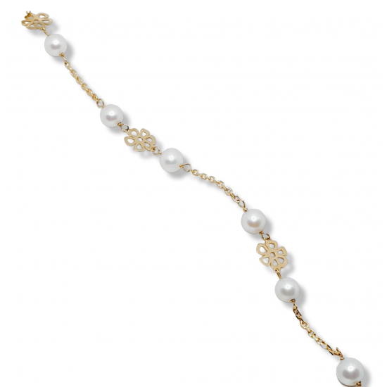 Pulsera en oro de 18k combinada con perlas de río. Largo 17cm