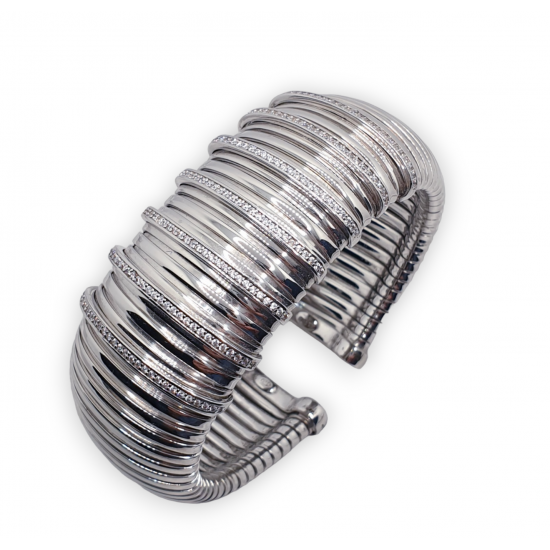 Pulsera en plata de ley, tubogas. 27mm de ancho. Peso 66 gramos. Diseño italiano.