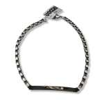 Pulsera tipo esclava en acero con placa bañada en rutenio y detalle de circonita. 21cm de largo