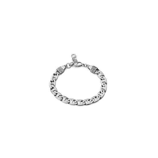 Esta pulsera de hombre de acero destaca por su diseño clásico de cadena, ofreciendo una combinación de robustez y elegancia. Fabricada en acero de alta calidad, garantiza durabilidad y resistencia, siendo ideal para el uso diario. Su diseño sencillo y atemporal la convierte en una pieza versátil que complementa cualquier estilo, desde casual hasta más formal. Perfecta para el hombre que busca un accesorio masculino y sofisticado, esta pulsera de cadena es un complemento esencial que añade un toque de distinción a cualquier conjunto. Largo 19,5 + 3 cm.