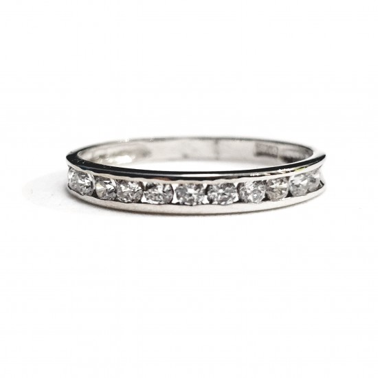 Sortija en oro blanco de 18k con circonitas en carril. Diseño eternity
