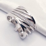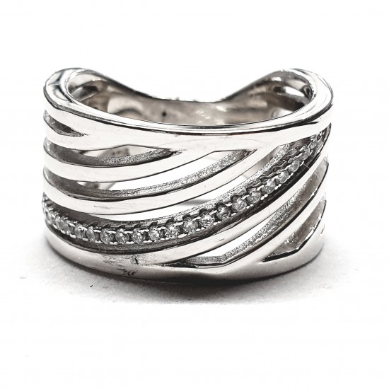 Sortija en plata de ley con banda de circonitas blancas. Talla disponible 15. Consultar para más tallas.