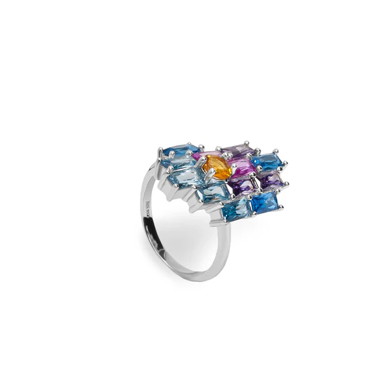 Anillo con piedras de colores estilo geométrico, ideal para aportar un toque de color a tus looks.