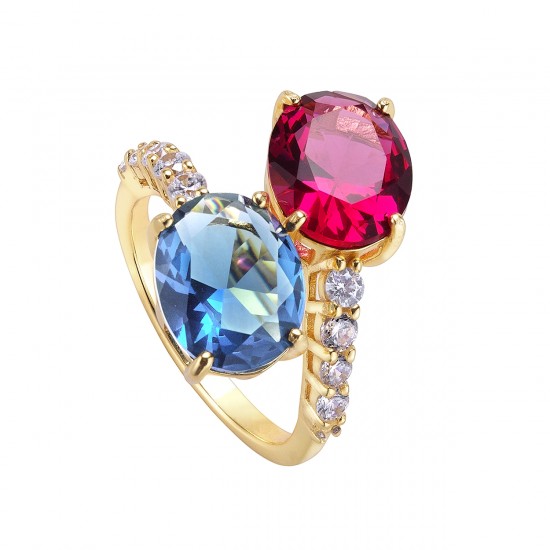 Anillo de Durán Exquse de la colección Armonía de Colores de plata dorada con cuarzos azul y rosa