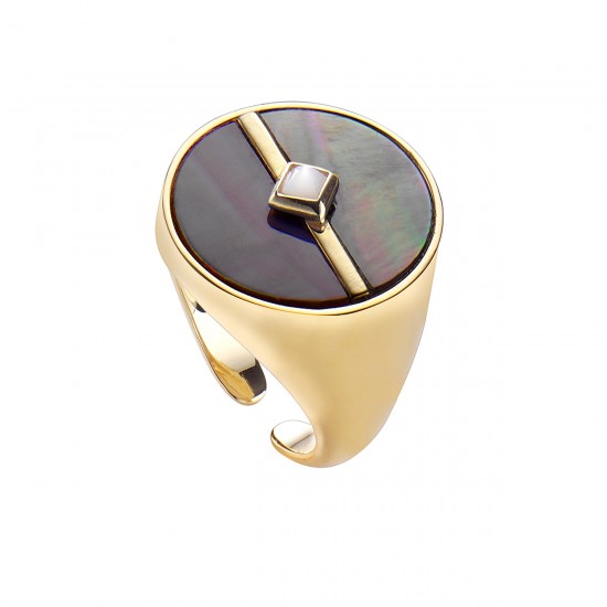 Anillo de Durán Exquse de la colección Diana de plata dorada con madreperla negra y blanca