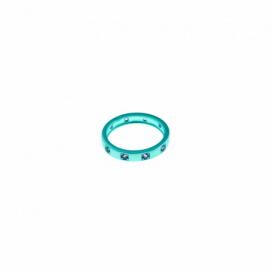 Anillo fabricado en plata de ley chapado en color verde agua vibrante combinado con circonitas talla princesa en color rubí. Disponible en talla 14. Consúltanos para más disponibilidad de talla y tiempo de entrega.