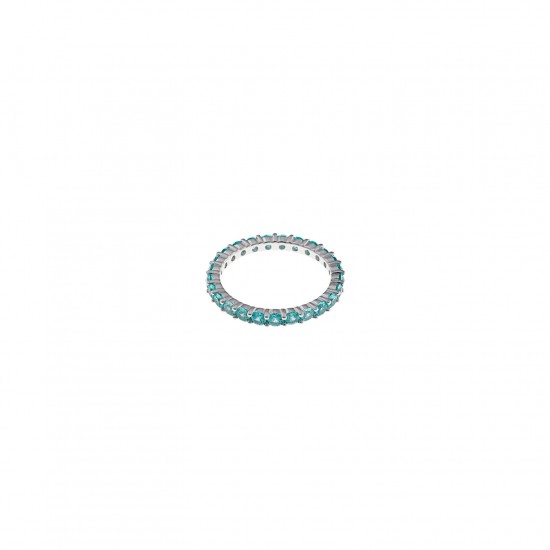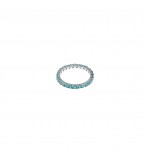 Sortija fabricada en plata de ley rodeada completamente de brillantes circonitas en verde agua. Disponible en la talla14. Consúltanos para más tallas y fecha de entrega.