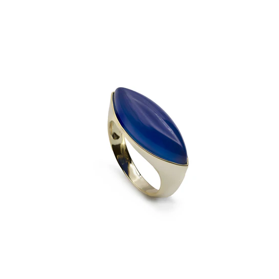 Anillo con piedra tono zafiro en forma ovalada alargada de Lineargent