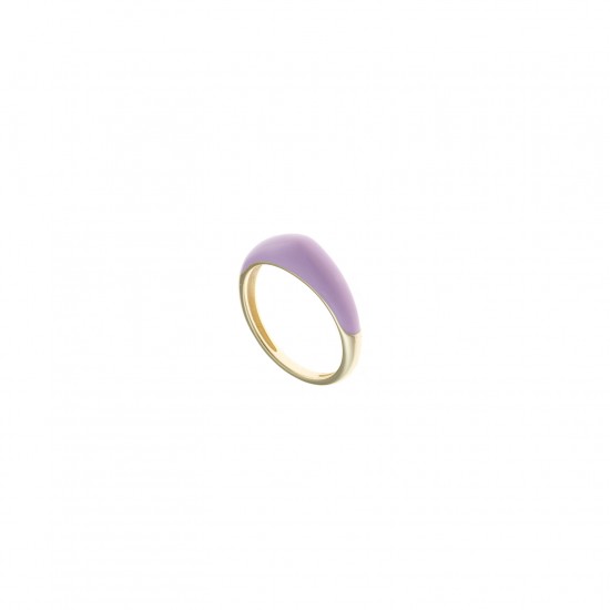 Sortija en forma de pera fabricada en plata de ley con baño de oro y esmalte color lila. Disponible en talla 12. Consúltanos por whatsapp para más tallas y tiempos de entrega.