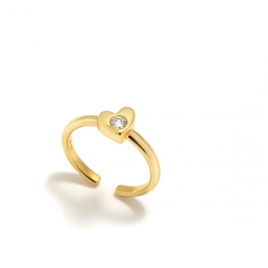 Anillo multisize fabricado en plata de ley con baño de oro en forma de corazón con una brillante circonita blanca en el centro.