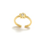 Anillo multisize fabricado en plata de ley con baño de oro en forma de flor con una brillante circonita blanca en el centro.