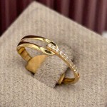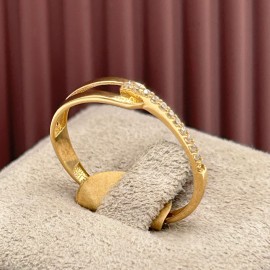 Sortija fabricada en oro de 18k con una parte doble lisa de la que nace un carril fino de pequeñas y brillantes circonitas. Disponible en talla 14. Consúltanos para más tallas y tiempos de entrega.