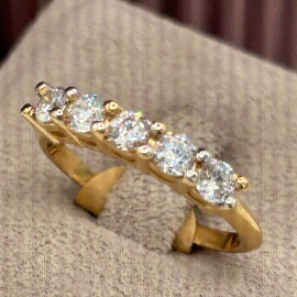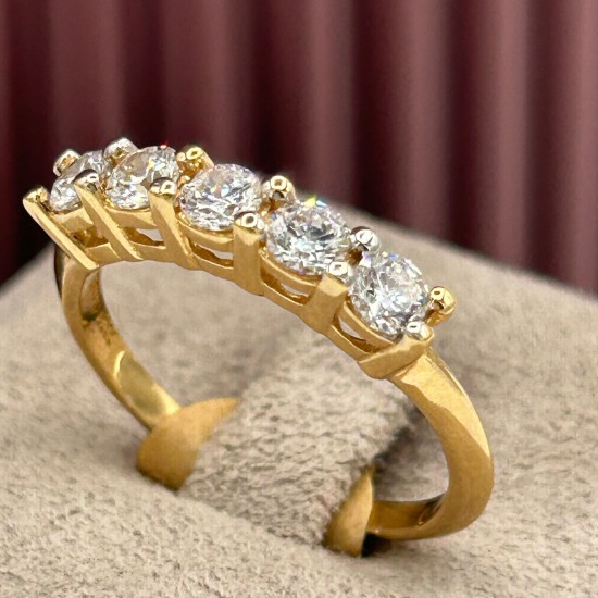 Sortija fabricada en oro de 18k con 5 circonitas sujetadas por garras. Disponible en talla 14. Consúltanos para más tallas y tiempos de entrega.