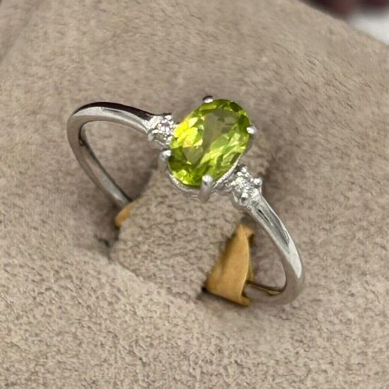 Sortija fabricada en oro blanco de 18k con una piedra citrino central y dos pequeñas y brillantes circonitas en los laterales. Disponible en talla 12. Consúltanos para más tallas y tiempos de entrega.